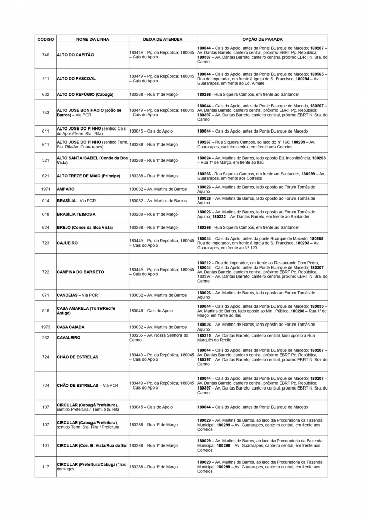 ObsNão há perda de paradaE estas linhas 200 e 232 deixam de atender o PED SELETIVO 180215, no canteiro central da Av. Dantas Barreto, lado oposto à Rua Marquês do Recife, que havia sido indicada como uma opção para os usuários.