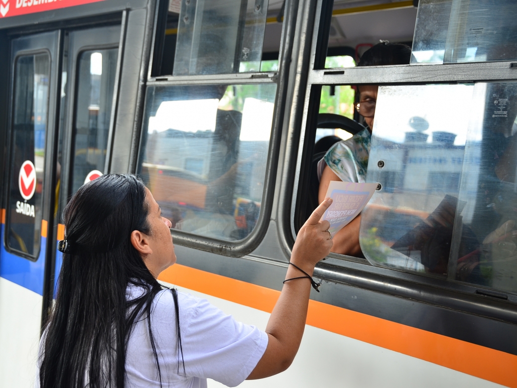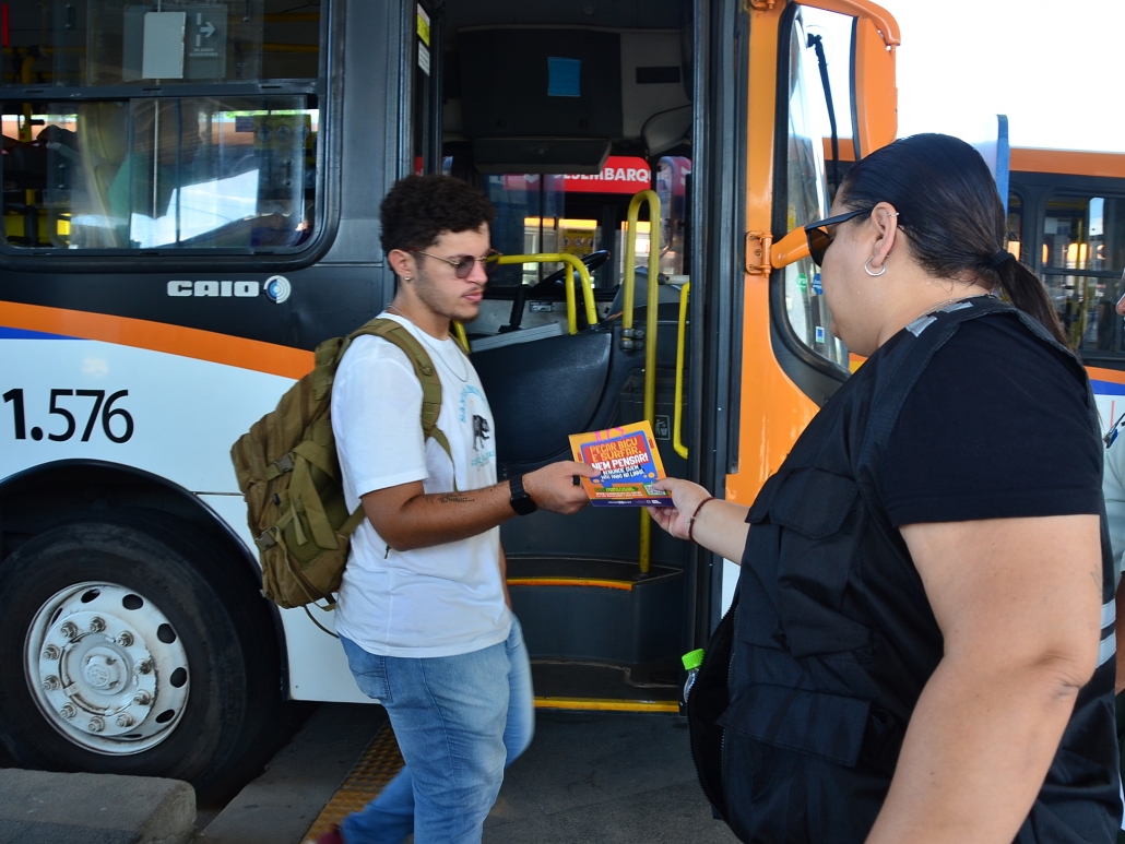 Dando continuidade as ações de repreensão a prática descontrolada de “surf” e “amorcegamento” nos ônibus, principalmente entre os jovens, técnicos de educação e fiscalização do Grande Recife Consórcio de Transporte -CTM, estiveram hoje (19), no Terminal Integrado Rio Doce, levando a Campanha “Pegar Bigu e Surfar, nem pensar”, que tem como objetivo alertar sobre os riscos que correm com a prática de se pendurar do lado de fora ou no teto do ônibus. No local, foram distribuídos panfletos e proferidas mini palestras para os usuários daquele terminal.