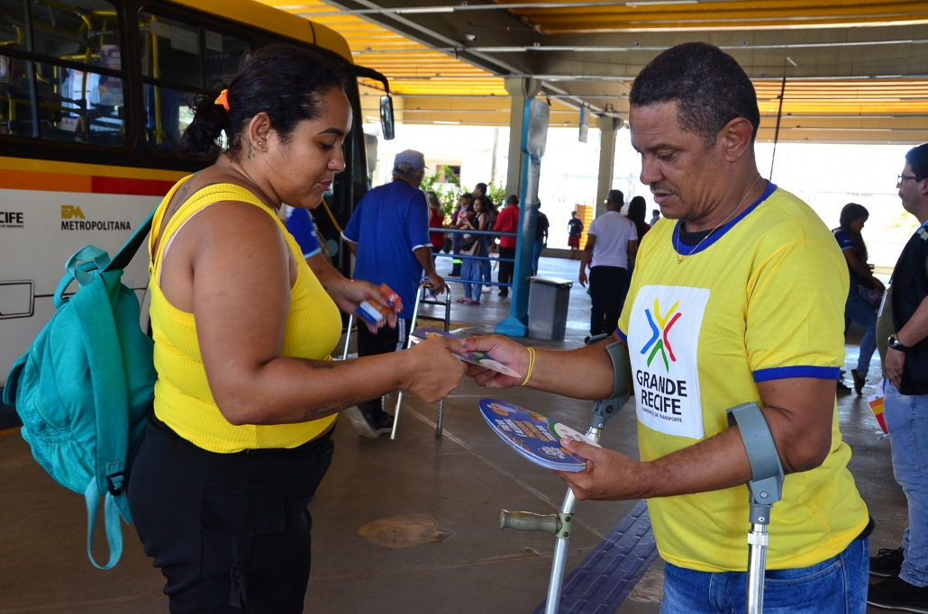 O transporte público é um aspecto fundamental para a qualidade de vida nas cidades, e investir nessa área é essencial para garantir a mobilidade de todos os cidadãos. Para tanto, o Grande Recife Consórcio de Transporte – CTM, designou pessoas com deficiência – PCD, funcionários do CTM, voluntários, para realizarem panfletagem nos Terminais Integrados da Joana Bezerra, Recife, Aeroporto e TIP, informando sobre as 131 linhas, sendo 84 convencionais, 7 BRT’s e 40 bacuraus que mudam temporariamente o itinerário e pontos de embarque e desembarque diferentes dos habituais durante os festejos de momo.