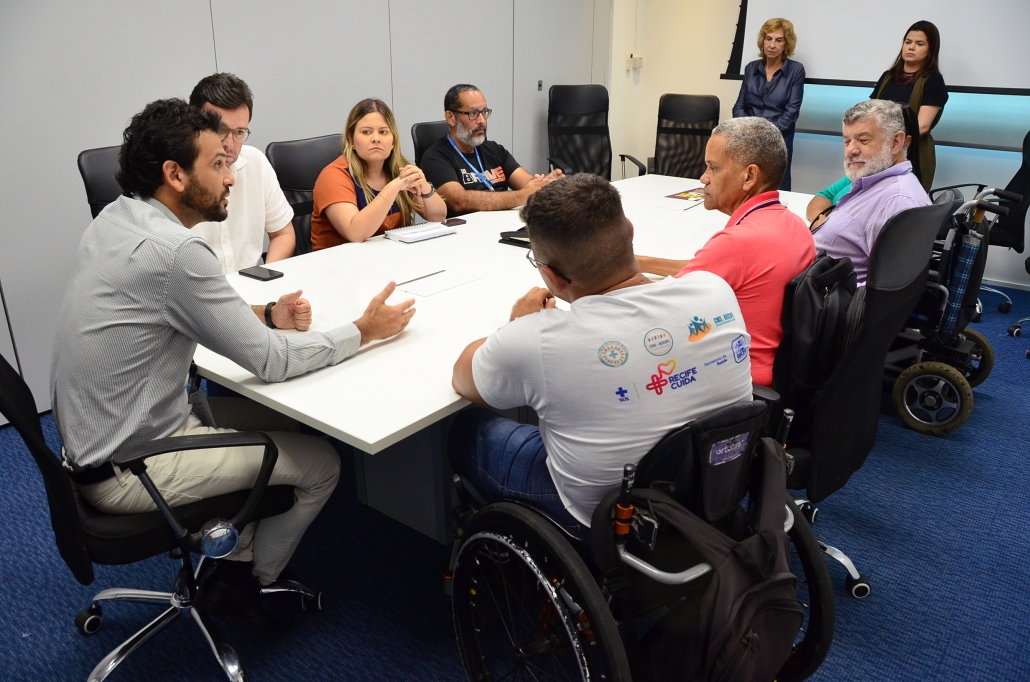 Matheus Freitas, Diretor-Presidente do Grande Recife Consórcio de Transporte – CTM, acompanhado do Coordenador Jurídico, Roberto Campos, e da Ouvidora, Carolina Melo, recebeu hoje (14), representantes do Conselho Municipal de Defesa dos Direitos da Pessoa com Deficiência do Recife (Comud/Recife), quando foram ressaltadas as políticas públicas referente a garantia da mobilidade urbana no transporte público para pessoas com deficiência – PCD.
