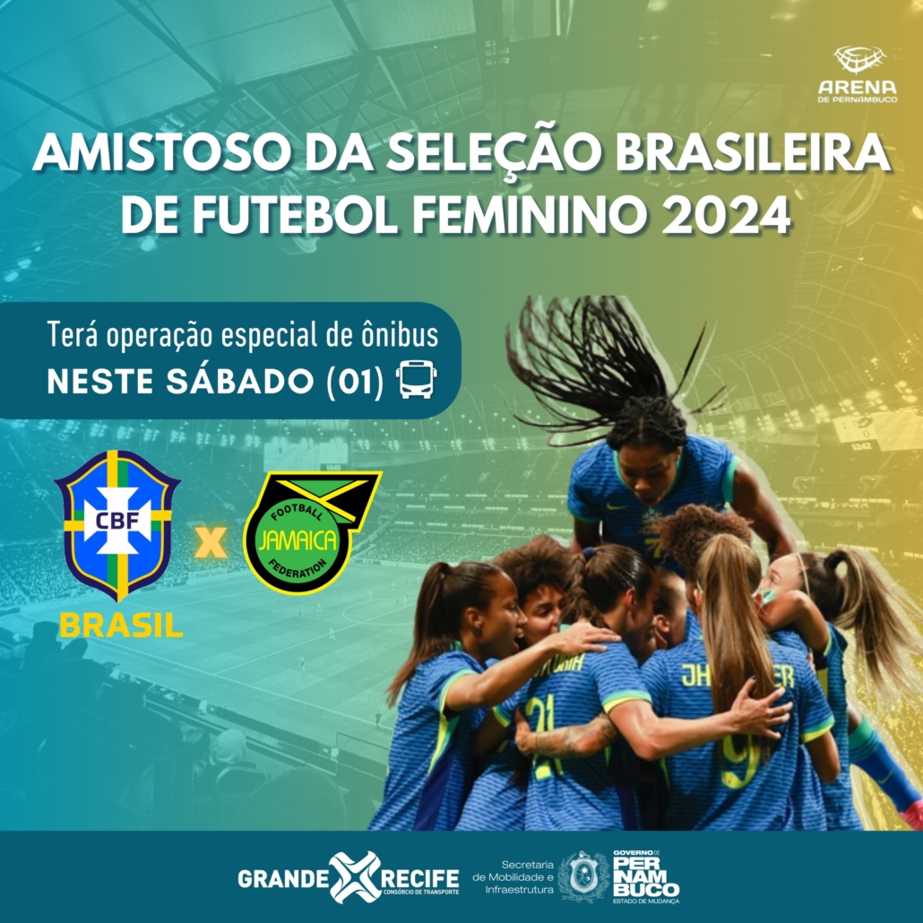 O amistoso da seleção brasileira de futebol feminino 2024 entre Brasil x Jamaica, que acontecerá no sábado (01), às 17h, na Arena de Pernambuco, vai contar com operação do Grande Recife Consórcio de Transporte (GRCT). A linha 047- TI Cosme e Damião/Arena será ativada a partir das 14h e a tarifa será a do Bilhete Único (anel A: R$4,10). O Grande Recife orienta que o torcedor antes de embarcar no ônibus, no Terminal Integrado Cosme e Damião indo para a Arena de Pernambuco, adquira antecipadamente sua pulseira, utilizando seu cartão VEM ou pagando em dinheiro, para garantir o acesso gratuito ao ônibus após o jogo, no retorno para o terminal integrado. Por se tratar de serviço eventual não haverá gratuidade ou abatimento tarifário. Ao torcedor sugerimos utilizar o transporte público de passageiros, devendo ir para o TI Cosme e Damião utilizando o Metrô e lá embarcar na linha de ônibus com destino a Arena de Pernambuco. Toda a operação será monitorada por fiscais do Grande Recife e, sendo necessário, o reforço e ajustes nos intervalos entre um ônibus e outro e no fim do jogo, eles serão realizados.