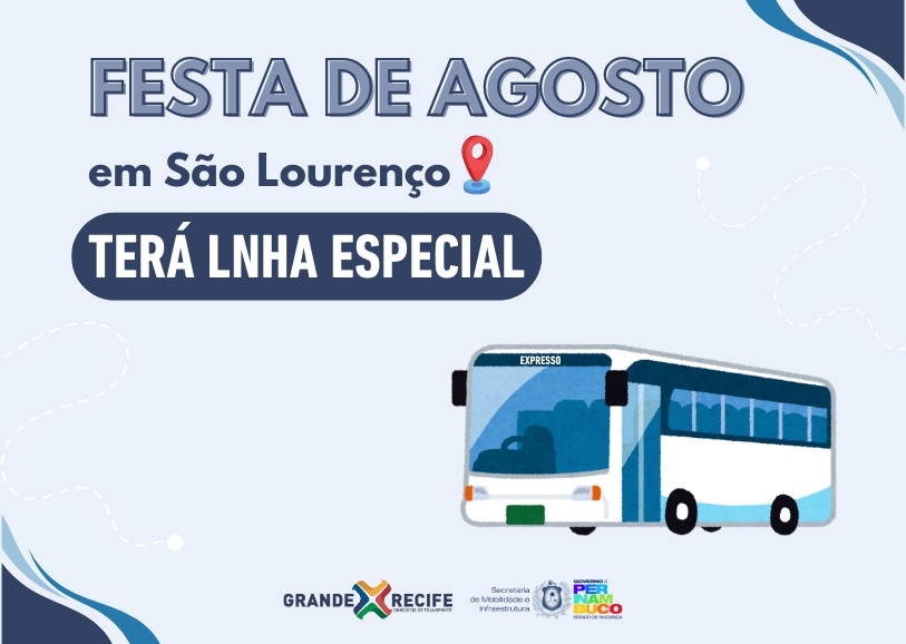 Com o início das comemorações das festividades do Padroeiro de São Lourenço da Mata, o Grande Recife Consórcio de Transporte – CTM, informa que, até o dia 11 de agosto, ocorrerá um reforço nas operações das linhas 2450 – TI Camaragibe (Conde Boa Vista), 2457 – São Lourenço (Bacurau) e 2491 – São Lourenço/TI Camaragibe. Além disso, foi ativada a linha especial 2461 – Shopping Camará que irá operar durante o período da Festa realizando o seguinte itinerário:
