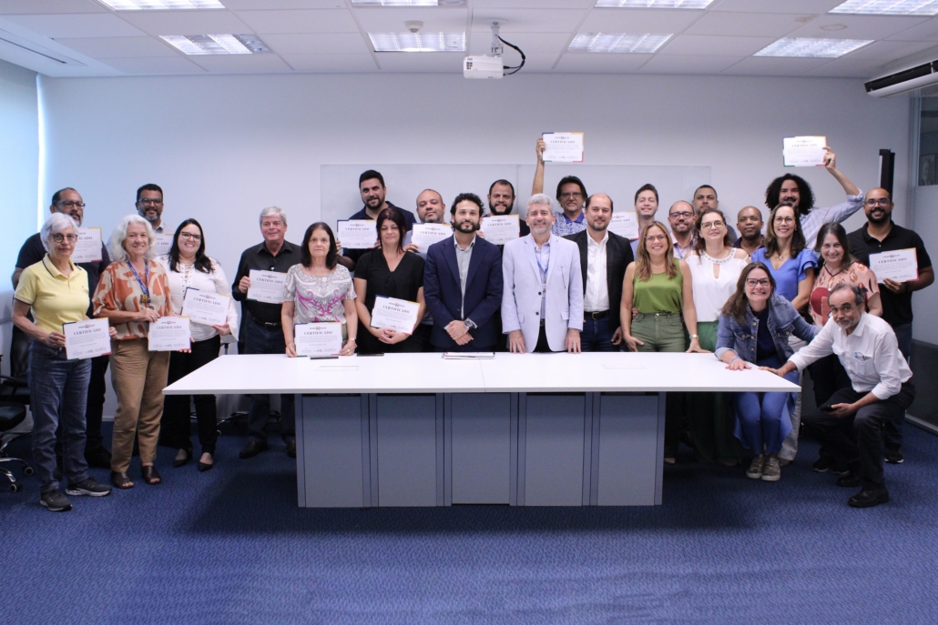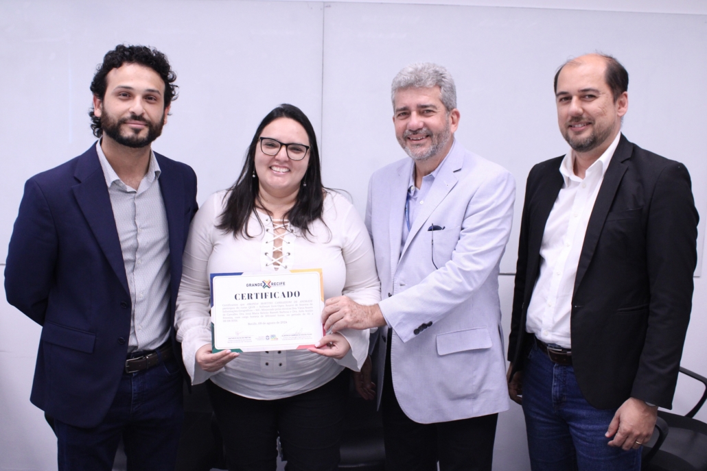 Encerrando as atividades, o Diretor-Presidente do CTM, Matheus Freitas, acompanhado do Diretor-Presidente da EGAPE, Henrique Oliveira, e das professoras que ministraram o curso, Dra. Vânia Carvalho, Aida Araújo e Ioná Beltrão, realizaram hoje (13), a entrega de certificados para os concluintes da formação. Representando a turma, Amanda Martins Carrazzoni de Andrade foi a primeira a receber o certificado.