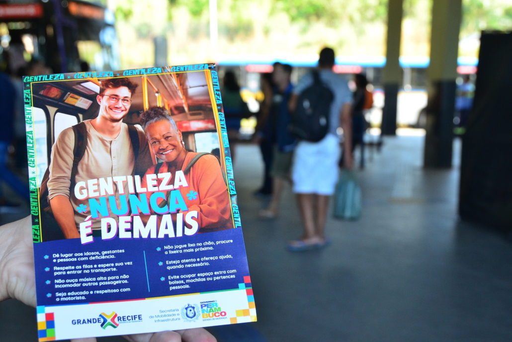 “Ser gentil é algo que nunca perde o valor, a importância da cortesia, da consideração e do respeito nas relações interpessoais. A gentileza vai além de simples gestos de educação, respeito aos idosos, gestantes, pessoas com deficiência, às filas e aos motoristas, respectivos pontos de parada, entradas dos terminais e preservação do patrimônio público, além de alertar aos pais e jovens sobre os perigos de acessar o terminal pelo portão exclusivo para ônibus, esse é o nosso objetivo”, com essas palavras, Matheus Freitas, Diretor-Presidente do Consórcio de Transporte Metropolitano – CTM, destacou a campanha ”Gentileza nunca é demais”, que foi realizada hoje (11), no Terminal Integrado da Macaxeira.