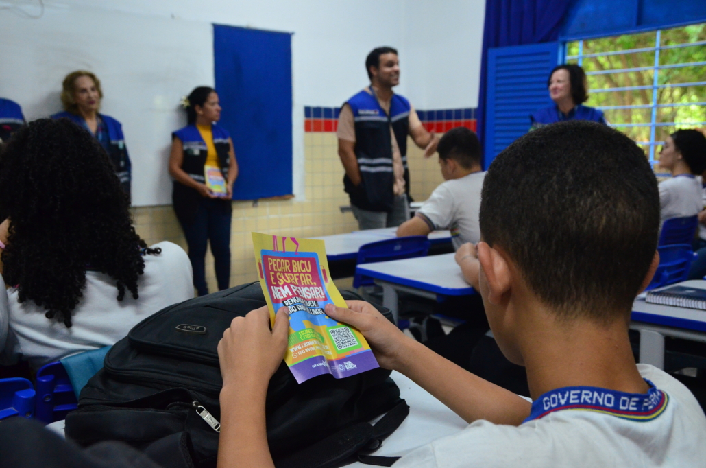 Escola Estadual Professor Fernando Mota recebeu campanha Pegar “Bigu” e “Surfar”, nem pensar
