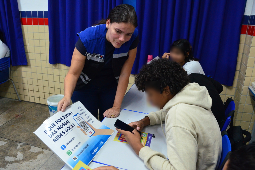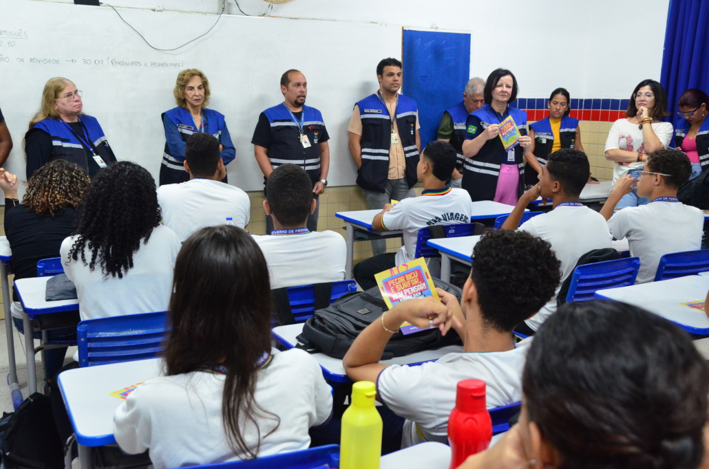 Dando continuidade a campanha “Pegar Bigu e Surfar, nem pensar”, por determinação do Diretor-Presidente do Consórcio de Transporte Metropolitano – CTM, Matheus Freitas, em parceria com as Secretarias de Educação e Defesa Social, técnicos de educação e fiscalização estiveram na Escola Estadual Professor Fernando Mota, em Boa Viagem, quando realizaram panfletagem alertando aos pais e alunos do aumento da prática criminosa de “surf” e “amorcegamento” nos ônibus da Região Metropolitana do Recife – RMR, principalmente entre os jovens.