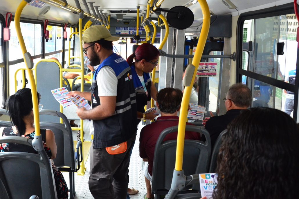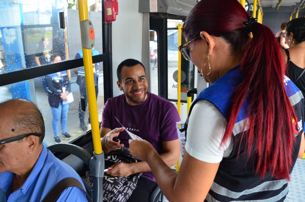 Com foco na conscientização dos motoristas que fazem parte do Sistema de Transporte Público de Passageiros da Região Metropolitana do Recife – STPP/RMR, da melhor forma de atender as pessoas com deficiência, gestantes e pessoas com baixa mobilidade, foi realizada hoje (06), no Terminal Integrado Rio Doce, localizado em Olinda, a campanha “E se fosse você?”, quando técnicos de educação e fiscalização do Consórcio de Transporte Metropolitano – CTM, enfatizaram a importância da responsabilidade individual na construção de um trânsito mais seguro, conscientizando também os condutores que passavam pelo local com distribuição de panfletos.