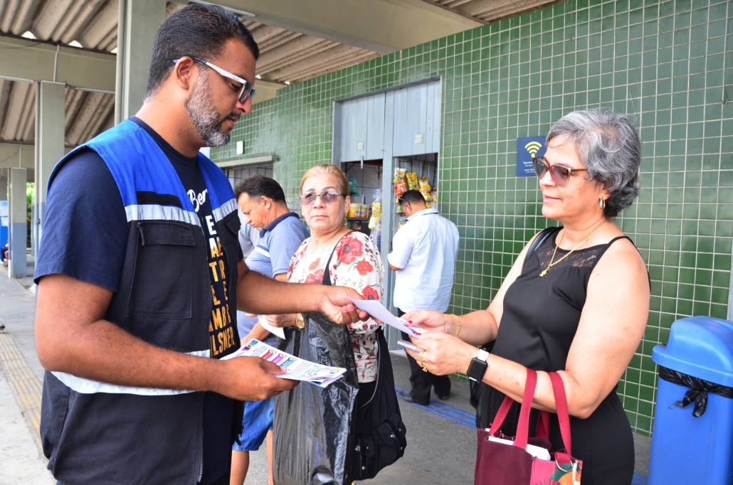 No local, Kathia Sena, gerente de fiscalização do Consórcio, proferiu minipalestra aos motoristas daquele TI alertando sobre o respeito aos idosos, gestantes, pessoas com deficiência, às filas, além dos respectivos pontos de parada, entradas dos terminais e preservação do patrimônio público. “Convidamos os motoristas e usuários a embarcar nos ônibus utilizando óculos embaçados, muletas, caneleiras de peso e protetor auricular ou cadeira de rodas. O intuito foi estimular o respeito e o cuidado dos demais usuários e operadores com as pessoas idosas e pessoas com deficiência, que têm prioridade no sistema de transporte público”.