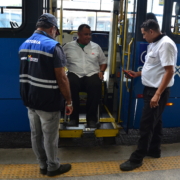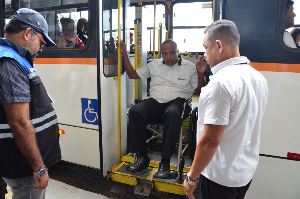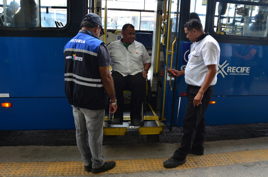 Técnicos de vistoria do Consórcio participaram da ação analisando os itens de acessibilidade, como a Plataforma Elevatória Veicular – PEV, assentos preferenciais, balaustre, cinto de segurança do cadeirante e a comunicação visual voltada para a acessibilidade. Os ônibus que não estavam de acordo com a legislação vigente foram autuados e determinado seu recolhimento.