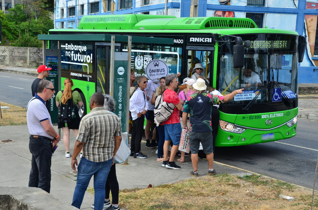 Turistas do navio Costa Favolosa contaram com ônibus elétrico para conhecer Recife e Olinda