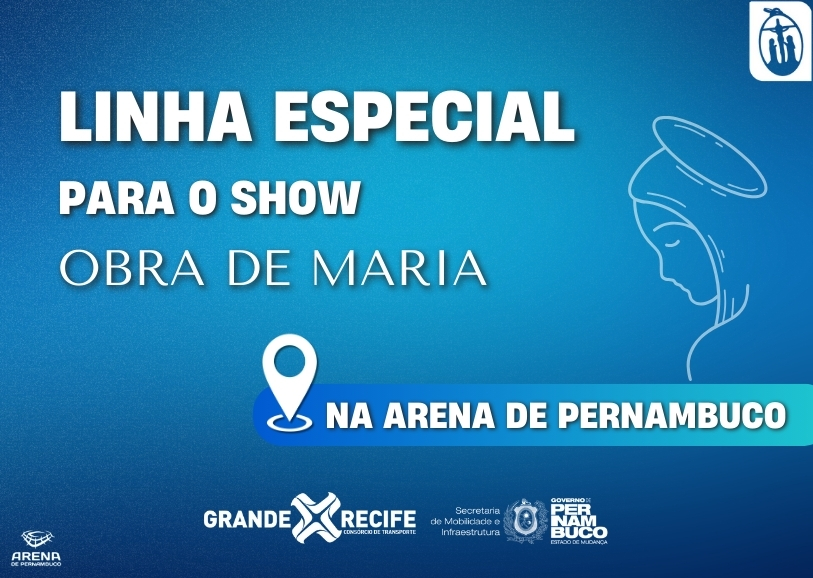 Os fiéis que participarão dos shows de celebração dos 35 anos da Obra de Maria, que acontecerá no próximo domingo (19), de 12h00 às 22h00, na Arena Pernambuco, contarão com esquema especial de ônibus. O Consórcio de Transporte Metropolitano – CTM, vai ativar a Linha 047 – Cosme e Damião/Arena, com saída do Terminal Integrado Cosme e Damião indo para a Arena de Pernambuco, a partir das 12h e a tarifa será a do Bilhete Único (anel A: R$4,30). Para esta operação, não haverá distribuição de pulseiras, e o pagamento deverá ser efetuado em dinheiro ou todos os cartões VEM. Também haverá gratuidades e abatimentos. Toda a operação será monitorada por fiscais da Gerência de Fiscalização do CTM.