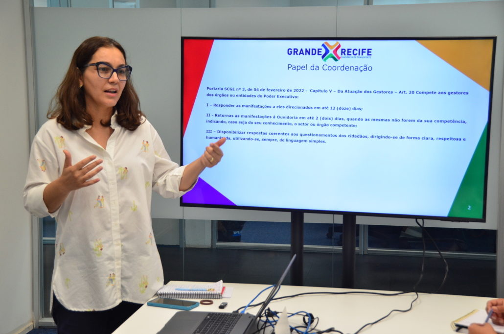 Com objetivo de ensinar o passo a passo na utilização do novo sistema de Ouvidoria – Ouve.PE, que está em fase de implantação, a ouvidora do Consórcio de Transporte Metropolitano – CTM, Patrícia Neves, realizou hoje (27), treinamento com os responsáveis pelas respostas das manifestações da Ouvidoria. Na capacitação, os servidores que têm competência para responder manifestações, Pedidos de Acesso à Informação ou Pedidos relacionados a Dados Pessoais, tiram dúvidas necessárias para o acompanhamento e atendimento da demanda. Foi utilizado o manual do gestor e tutoriais para manuseio visando a efetividade e segurança dos envolvidos.