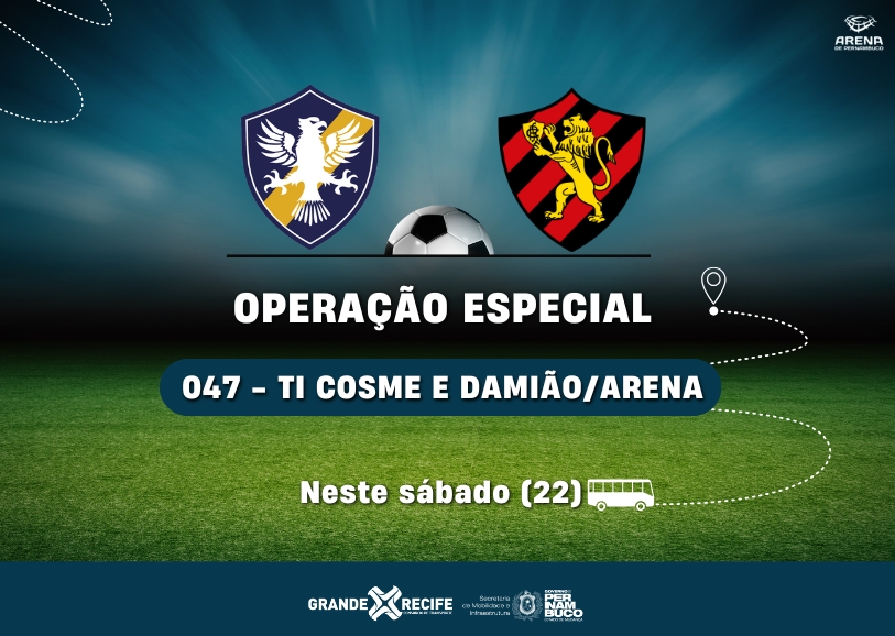 A partida entre Retrô x Sport, pelo Campeonato Pernambucano de Futebol 2025, que acontecerá amanhã (22), às 16h30, na Arena de Pernambuco, contará com operação especial de ônibus do Consórcio de Transporte Metropolitano – CTM. A linha 047 – TI Cosme e Damião/Arena será ativada a partir das 14h e a tarifa será a do Bilhete Único (anel A: R$4,30). Para garantir o acesso ao ônibus, o torcedor poderá usar o seu cartão VEM ou pagar em dinheiro. Por se tratar de serviço eventual não haverá gratuidade ou abatimento tarifário. Toda a operação será monitorada por fiscais do Grande Recife e, sendo necessário, o reforço e ajustes nos intervalos entre um ônibus e outro serão realizados.