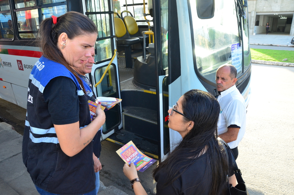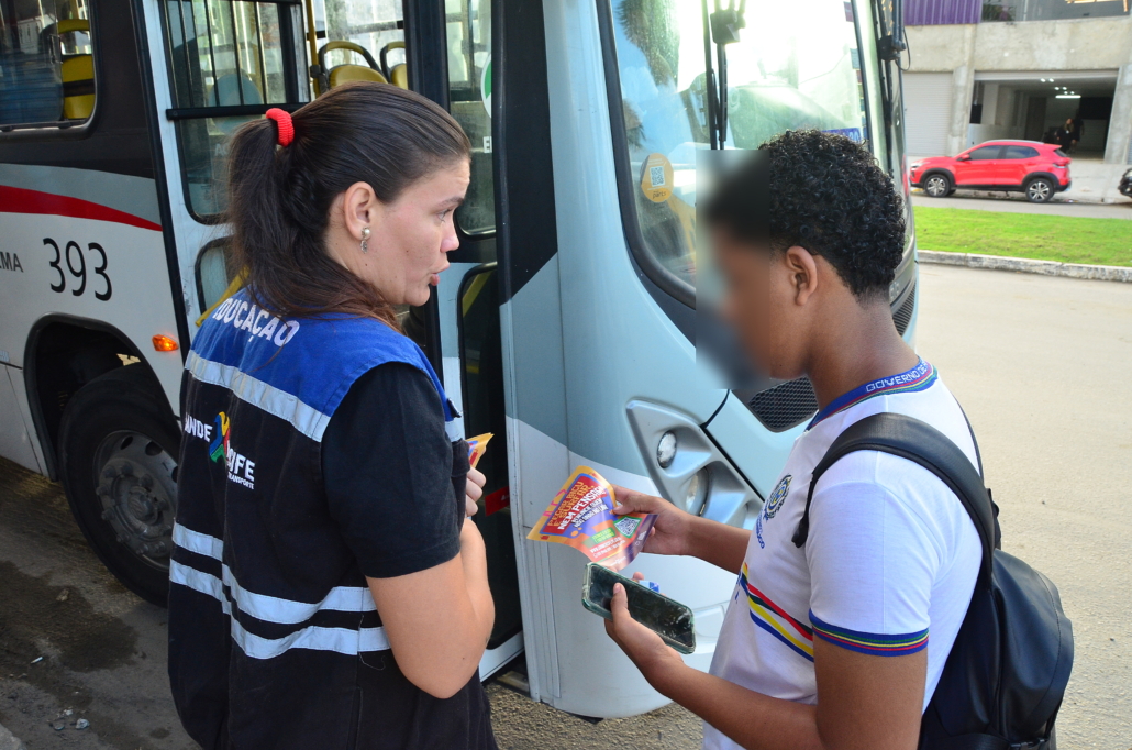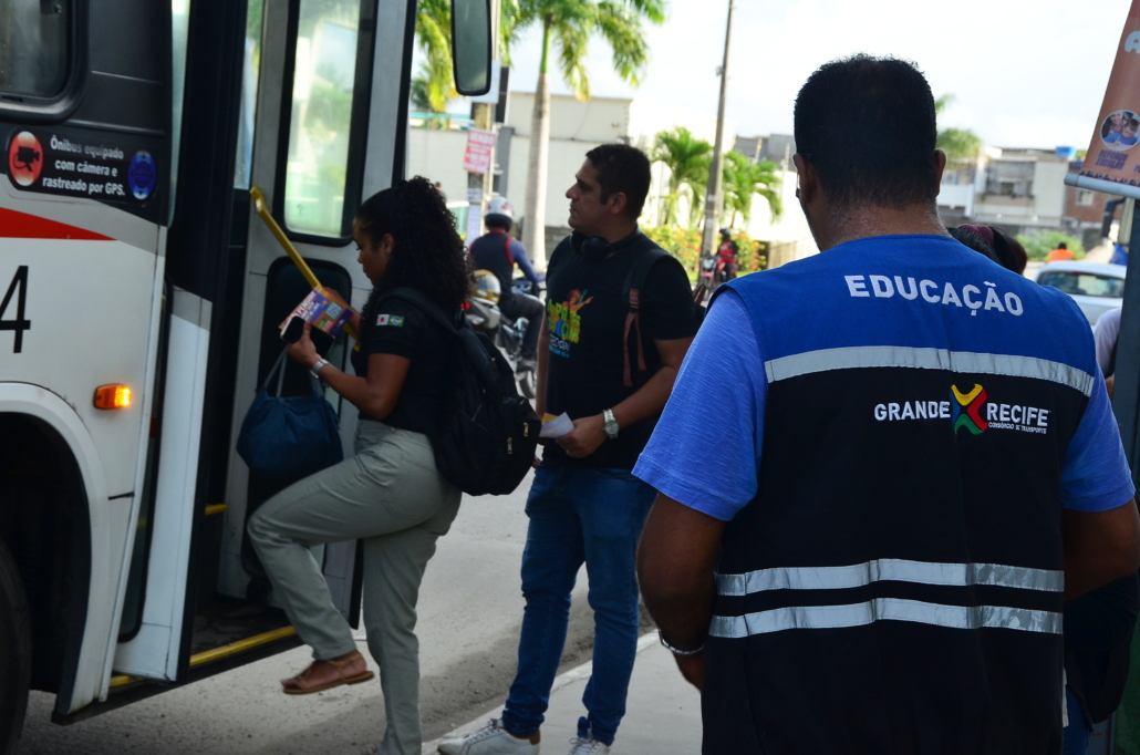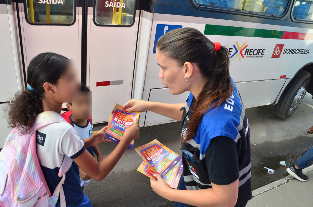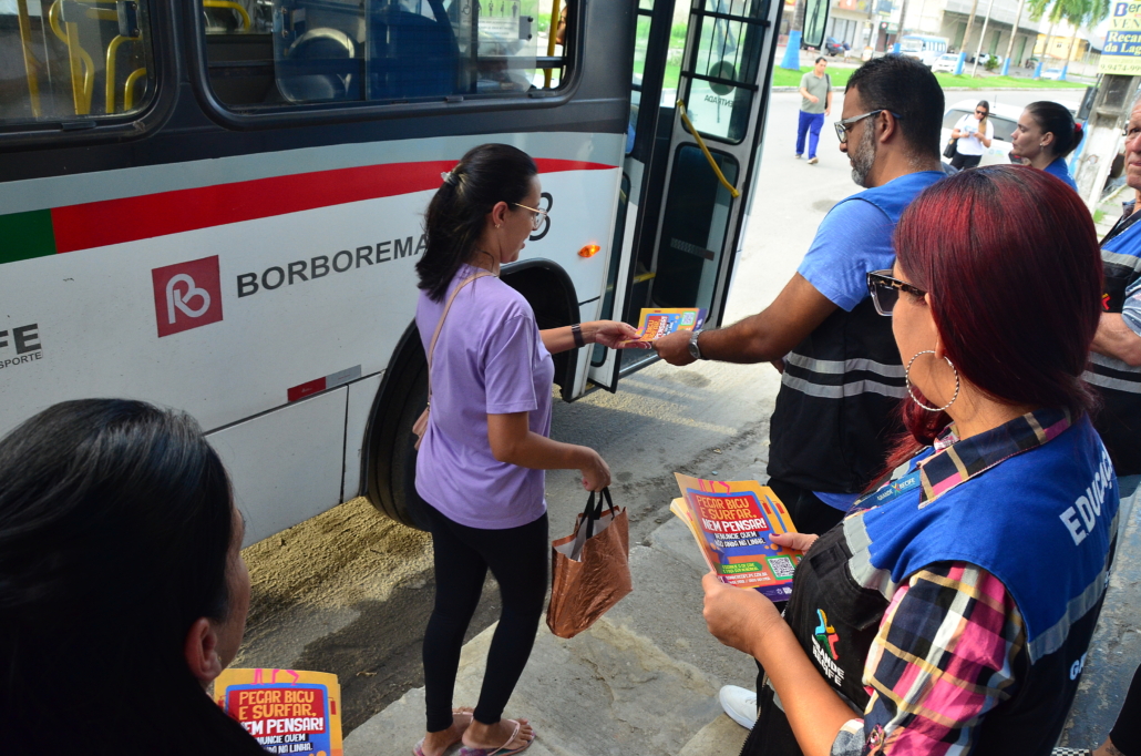 Dando continuidade a campanha “Pegar Bigu e Surfar, nem pensar”, lançada pelo Consórcio de Transporte Metropolitano – CTM, em 2023 e que já passou por Terminais Integrados e Escolas Públicas da Região Metropolitana do Recife – RMR. Diante do aumento da prática criminosa de “surf” e “amorcegamento” nos ônibus, principalmente entre os jovens, técnicos da Coordenadoria de Comunicação e Imprensa e das Gerências de Fiscalização e de BRT e Fluviais do CTM, estiveram hoje (03), no bairro de Jardim Piedade, mais precisamente, no Terminal da Linha 062 – Jardim Piedade, quando foi realizada ação de conscientização dos riscos de se pendurar do lado de fora ou no teto do ônibus, além da importância da denúncia quando presenciar essa prática.