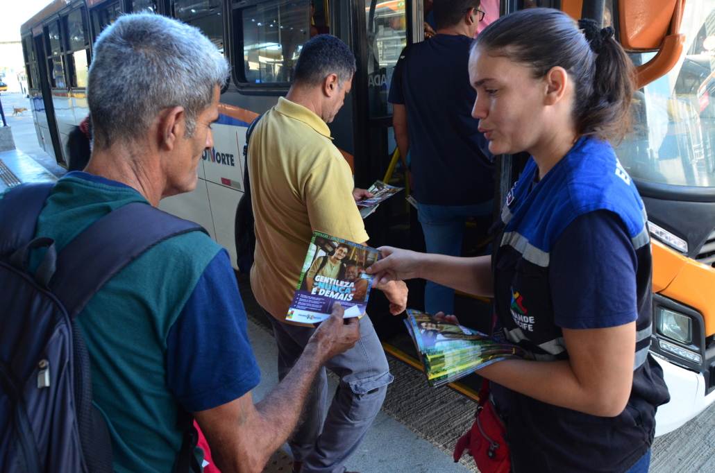 No local, equipe de técnicos da Coordenadoria de Comunicação e Imprensa e das Gerências de Fiscalização e BRT e Fluviais, realizaram panfletagem e, em uma conversa informal com os passageiros, motoristas e funcionários daquele TI, sobre práticas de convivência no transporte público, abordaram temas como ceder o assento a idosos, gestantes e pessoas com deficiência, respeitar as filas, aguardar sua vez para embarcar, evitar ouvir música alta, ser cortês com motoristas, não jogar lixo no chão e não ocupar assentos extras com bolsas ou mochilas. Também será reforçada a importância de atitudes empáticas e do cumprimento dos direitos e deveres de todos os passageiros.