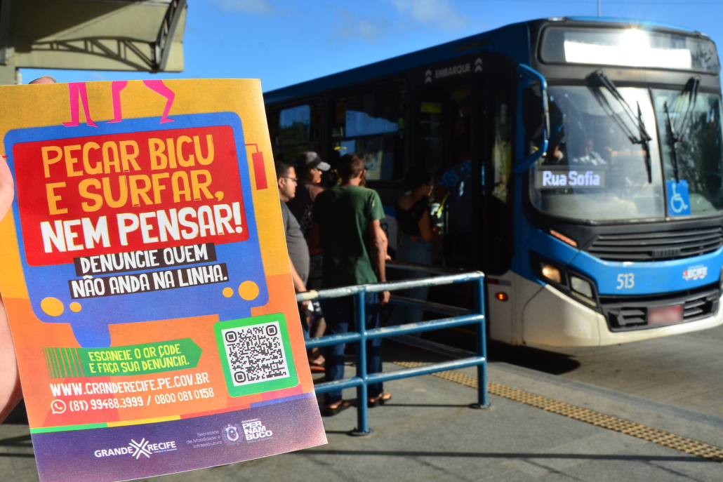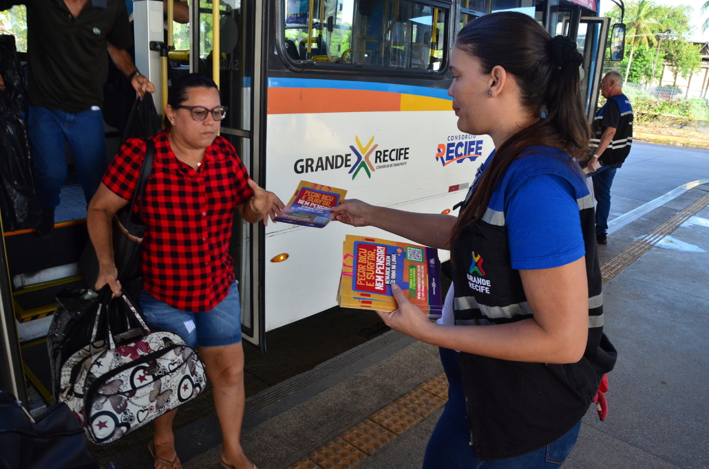 Com o aumento da prática criminosa do “surf” e do “amorcegamento” nos ônibus da Região Metropolitana do Recife (RMR), principalmente entre os jovens — o que pode causar acidentes graves, incluindo mortes, e coloca em risco a segurança de todos os usuários do transporte público —, o Consórcio de Transporte Metropolitano (CTM) realizou hoje (26), no Terminal Integrado Abreu e Lima, a campanha “Pegar Bigu e Surfar, Nem Pensar”.