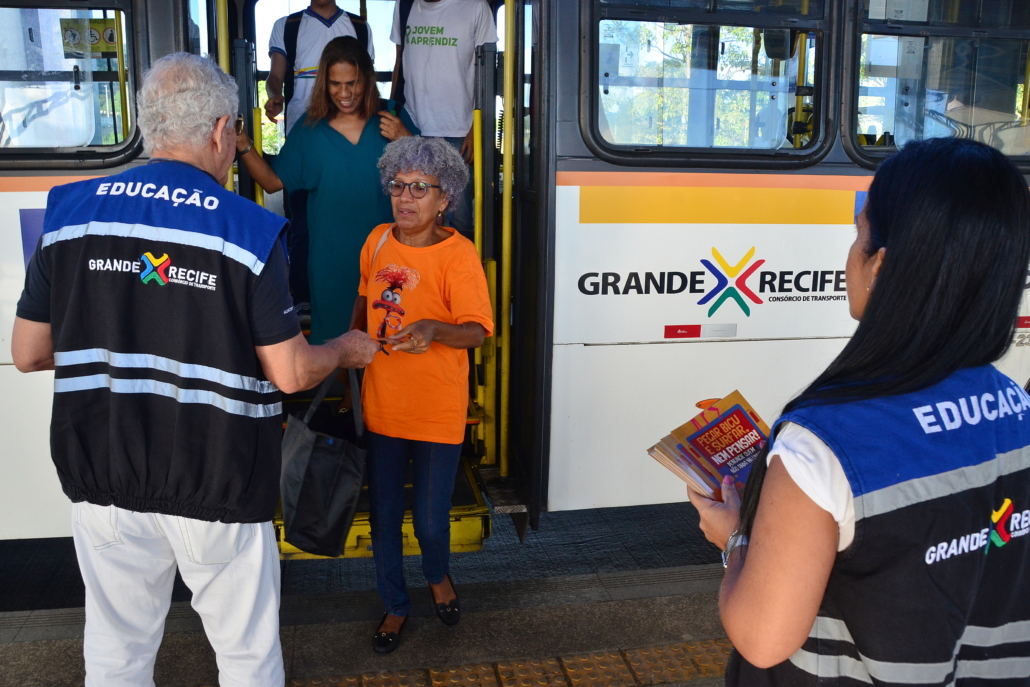 “Pegar Bigu e Surfar, Nem Pensar” – TI Abreu e Lima recebeu ação de conscientização contra essa prática criminosa nos ônibus