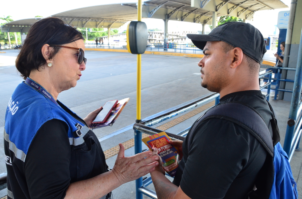 No local, passageiros, motoristas e funcionários foram abordados por equipes da Coordenadoria de Comunicação e Imprensa e das Gerências de Fiscalização e Operação do CTM, e receberam panfletos e orientações sobre a importância de denunciar esses casos às autoridades competentes, para que as medidas cabíveis sejam tomadas.