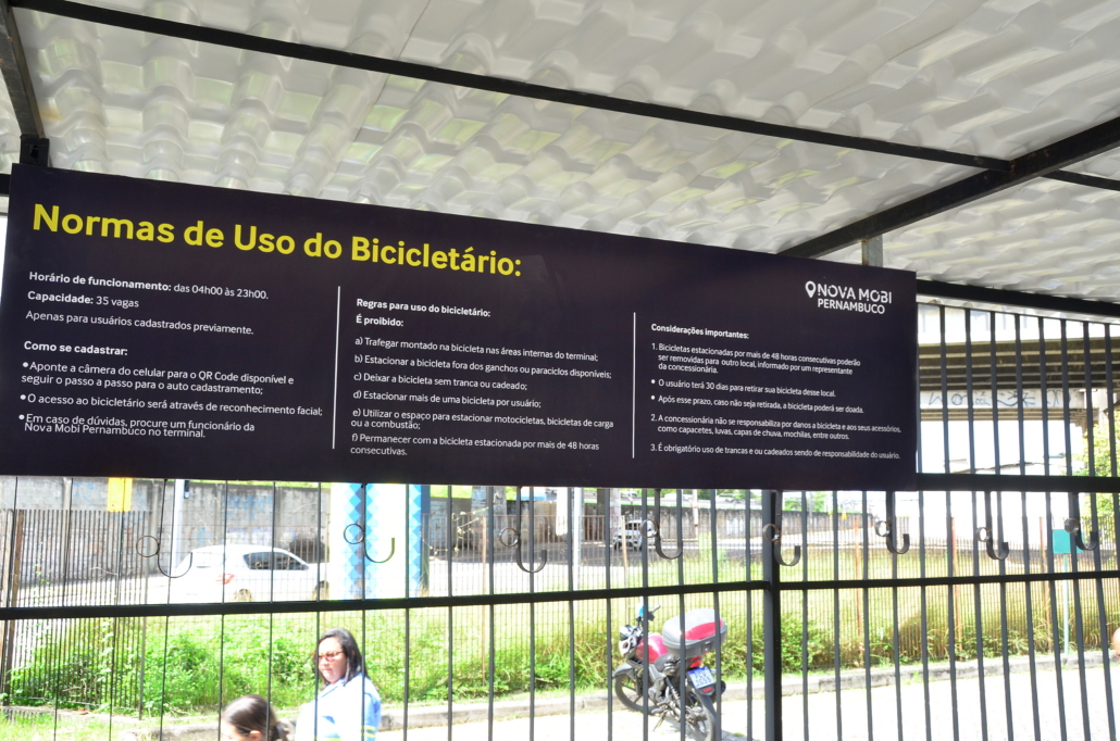As bicicletas que permanecerem estacionadas por mais de 48 horas consecutivas poderão ser removidas para outro local, com aviso prévio por um representante da concessionária. Após a remoção, o usuário terá 30 dias para retirá-la. O CTM e a Nova Mobi Pernambuco não se responsabilizam por danos à bicicleta ou aos seus acessórios, como capacetes, luvas, capas de chuva, mochilas, entre outros. Além disso, é proibido trafegar montado na bicicleta nas áreas internas do terminal, assim como estacionar fora dos ganchos ou paraciclos disponíveis, e também utilizar o espaço para estacionar motocicletas, bicicletas de carga ou bicicletas a combustão.