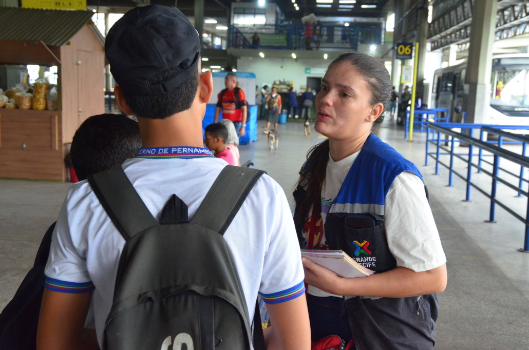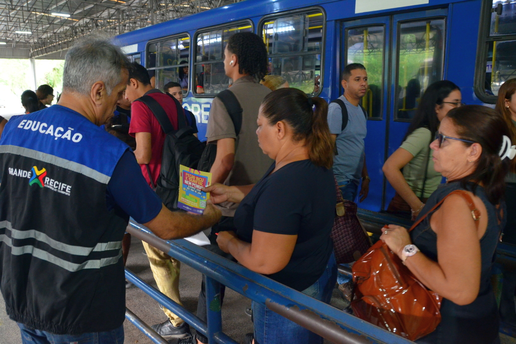 Além dos terminais, a iniciativa também é levada às escolas estaduais da RMR, onde os estudantes recebem material informativo e orientações sobre os riscos de viajar na parte externa dos ônibus. A ação busca alertar para a ameaça à vida que representa se pendurar do lado de fora ou no teto do veículo.