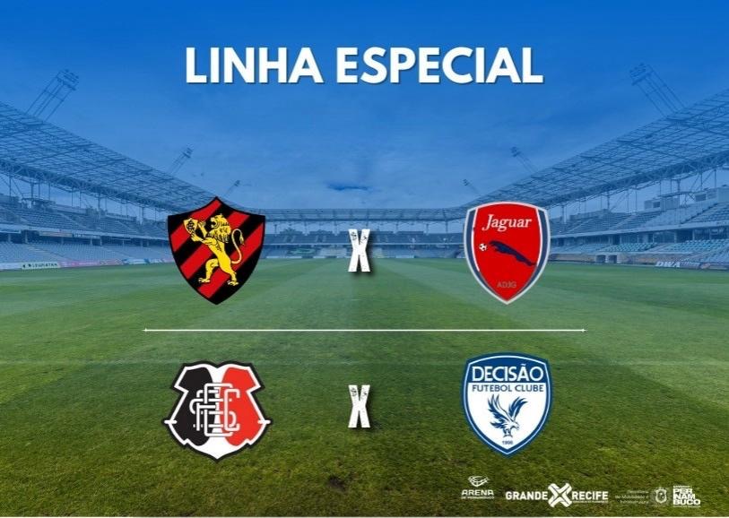 Para a partida entre Jaguar e Sport, que acontece no sábado às 17 horas, o Consórcio ativará a linha especial 047-Cosme e Damião/Arena, com início às 15 horas e seu encerramento, após o jogo, conforme avaliação da fiscalização do CTM, conforme o movimento de torcedores.