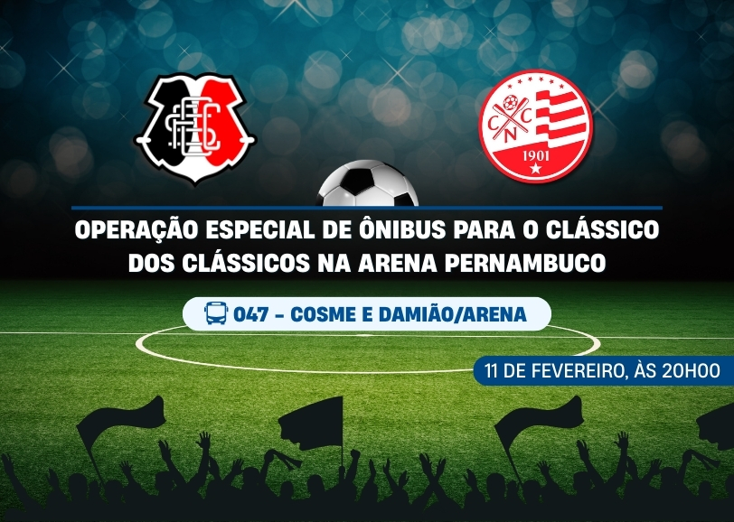 Para o grande clássico entre Santa Cruz e Náutico, que acontece nesta quarta-feira, 11 de fevereiro de 2026, às 20h00, na Arena Pernambuco, pelo jogo de ida da semifinal do campeonato pernambucano, o Grande Recife Consórcio de Transporte preparou uma operação especial para garantir o deslocamento dos torcedores.