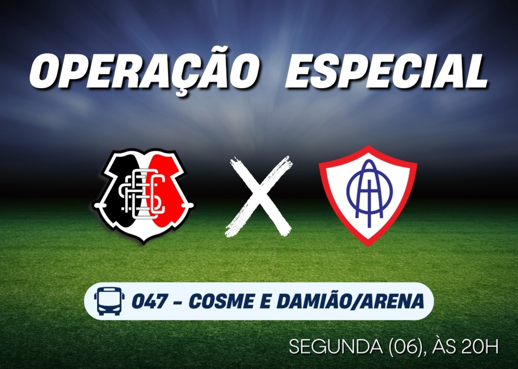 O Grande Recife Consórcio de Transportes (CTM) preparou uma operação especial de transporte para atender os torcedores que irão acompanhar a partida entre Santa Cruz e Itabaiana (SE), marcada para a próxima segunda-feira (6), às 20h, na Arena de Pernambuco. Para facilitar o deslocamento do público, será ativada a linha 047 – Cosme e Damião/Arena, com a operação das 18h até o término do evento, conforme orientação da equipe de fiscalização do CTM.