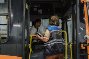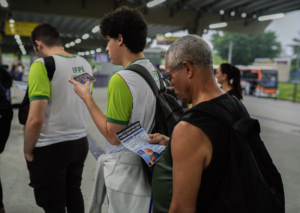 A atividade de conscientização mobilizou as equipes de Fiscalização e de Comunicação do Consórcio, que distribuíram informações e dialogaram diretamente com os passageiros que circulavam pelo Terminal Integrado, teve um reforço especial com a presença do senhor Francisco José de Lima, representante do seguimento da pessoa idosa no CSTM, que acompanhou os trabalhos e destacou a importância de levar esse conhecimento para mais perto dos usuários.
