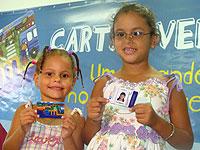 O Grande Recife Consórcio de Transporte entregou, hoje, simbolicamente a duas crianças que utilizam o Sistema de Transporte Público de Passageiros da Região Metropolitana do Recife, os dois primeiros cartões do Vale Eletrônico Metropolitano (VEM) Infantil – destinado usuários menores de seis anos. A iniciativa, que é inédita no País, irá beneficiar, de imediato, 16 mil crianças, cujos pais ou responsáveis já efetuaram o cadastro de solicitação do documento. As inscrições terão caráter permanente. As garotas Amanda Vitória Lopes, 4, e Camilly Fernandes de Messias, 5 receberam os cartões das mãos do Secretário das Cidades, Humberto Costa e do presidente do Grande Recife, Dilson Peixoto.