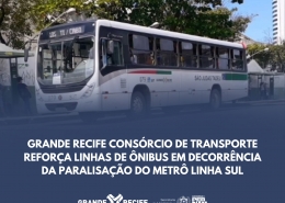 Grande Recife Consórcio de Transporte reforça linhas de ônibus em decorrência da paralisação do metrô linha sul