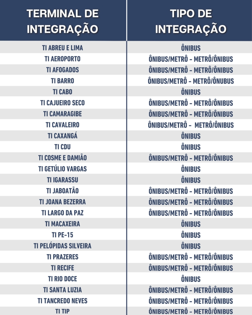 TERMINAIS INTEGRADOS QUE OPERAM NO SISTEMA DE INTEGRAÇÃO TEMPORAL